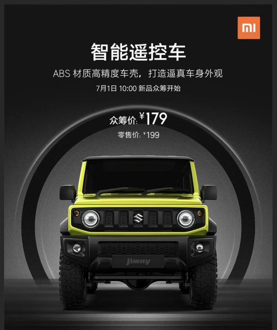 小米在微博发布“造车”信息引起了一时轰动,事实上这是一台遥控车,其外形是缩小版的全新铃木吉姆尼,大家不必担心外观侵权的问题,因为这是官方授权的正版产品,其车身侧面还会印上小米的品牌LOGO。小米本次推出的模型比例的1:16,这款遥控车即将开始众筹,众筹价为179元,保持了小米“平价亲民”的路线。最新一代铃木吉姆尼并没有正式引入过国内售卖,平行进口价格不菲,而之前一些大厂推出的类似比例吉姆尼模型也基本在1000元以上,所以买个正版的全时四驱吉姆尼遥控车好像更加划算,对比您有什么想法?
