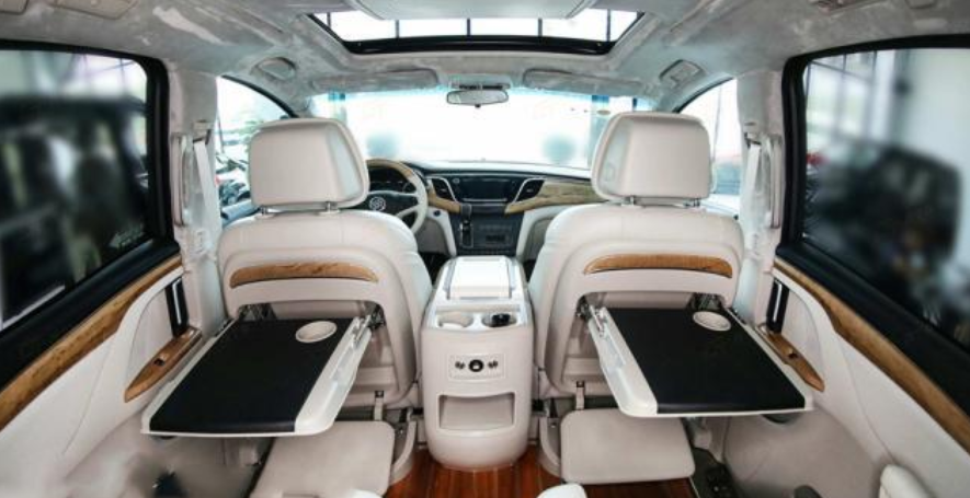 至于内饰,改装厂家也进行了一些细微的调整,比如将地板更换为纯木结构、加装桃木的装饰盖板,包括小桌板和LOGO反光条也都尽可能往高端化调整,整体观感会比普通版的GL8更显高级。