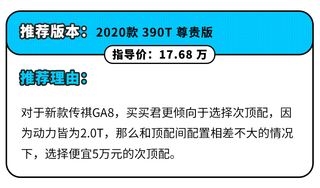 传祺GA8搭载的这台发动机号称自主最强2.0T,而这台代号为4B20J1的广汽自研发动机,在DCVVT特有技术的加持下,最大马力达到252Ps,峰值扭矩则是390N·m。可能唯一的问题是GA8并不能吃92号粗粮,而是更为精细的95号。