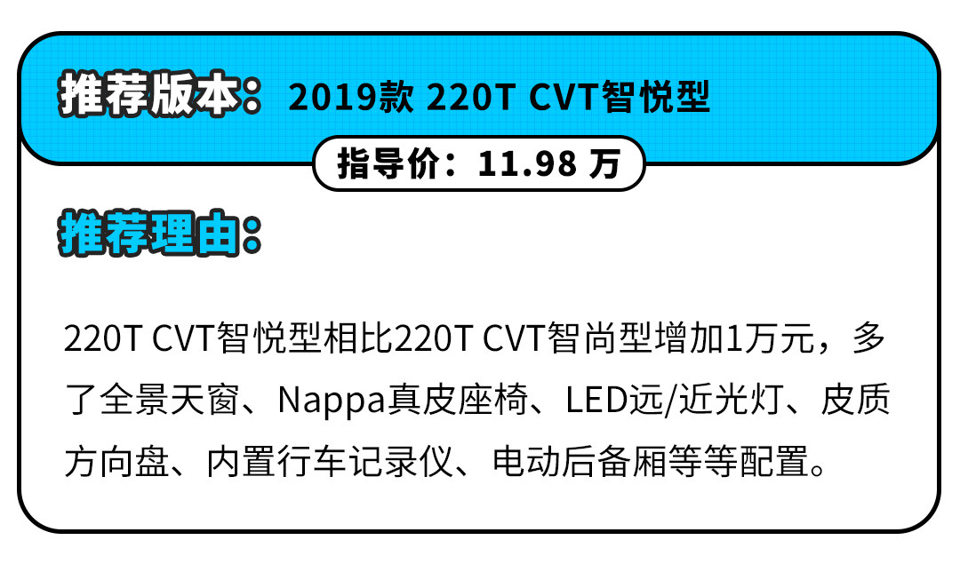 在买买君看来,这款车还是有很多亮点的。不仅可以选择2.0T+8AT动力系统,而且配置水平也不低,对于一款12万不到的车型来说确实是惊喜。
