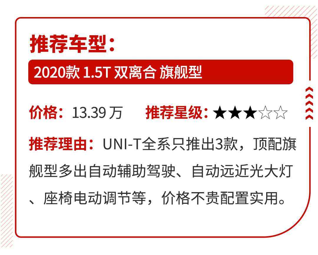 UNI-T搭载了蓝鲸1.5T涡轮增压发动机,最大功率180马力,峰值扭矩为300牛·米,并提供ECO、NORMAL和SPORT三种驾驶模式。