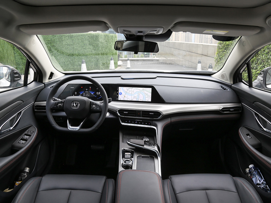 相比起外观,UNI-T的内饰设计相对收敛一些,但中控台用了大面积软质材料做包裹这点足够好评,比较吸引眼球的是全新样式的电子挡把设计,像极了宇宙飞船操作杆,非常有未来感。