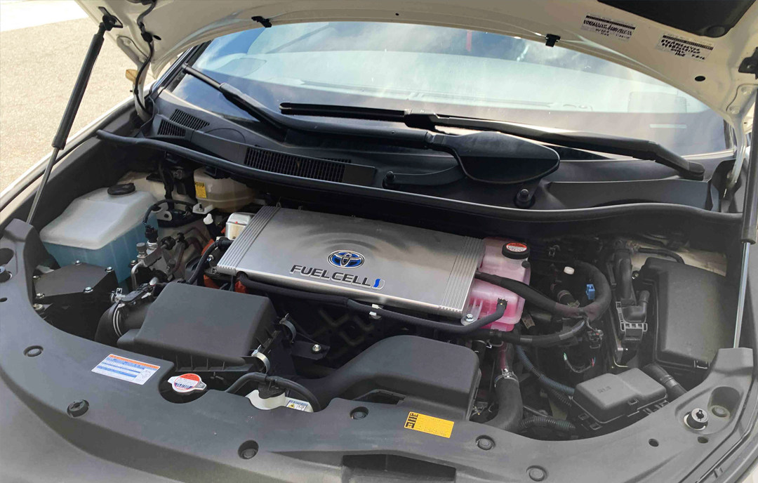 Mirai的动力系统被称作TFSC(Toyota FC Stack),即丰田燃料电池堆栈,是以燃料电池堆栈为核心组件的混合动力系统。TFSC没有传统的汽油发动机,也没有变速器,发动机舱内部是电动机和电动机的控制单元。
