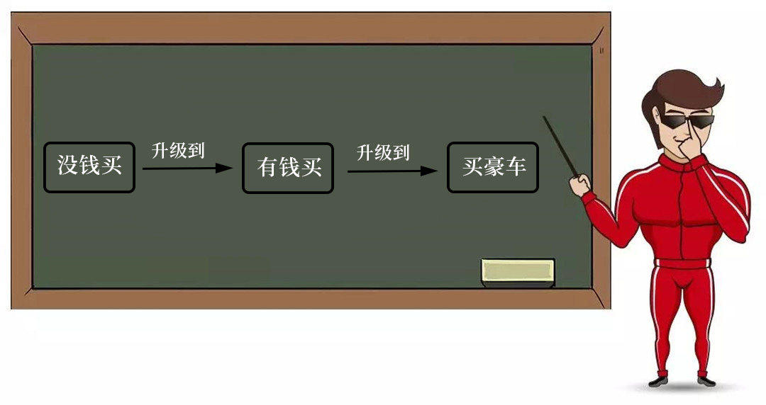 合理的消费升级应该是没钱买车升级为有钱买,有钱买升级到买豪车。但如果为了面子选择跳级直接买豪车,而又由于自己经济基础不足转而购买二手豪车,但又未考虑自己的收入能否支撑豪车的正常保养、加油所产生的费用,实则这是一种畸形的消费观。