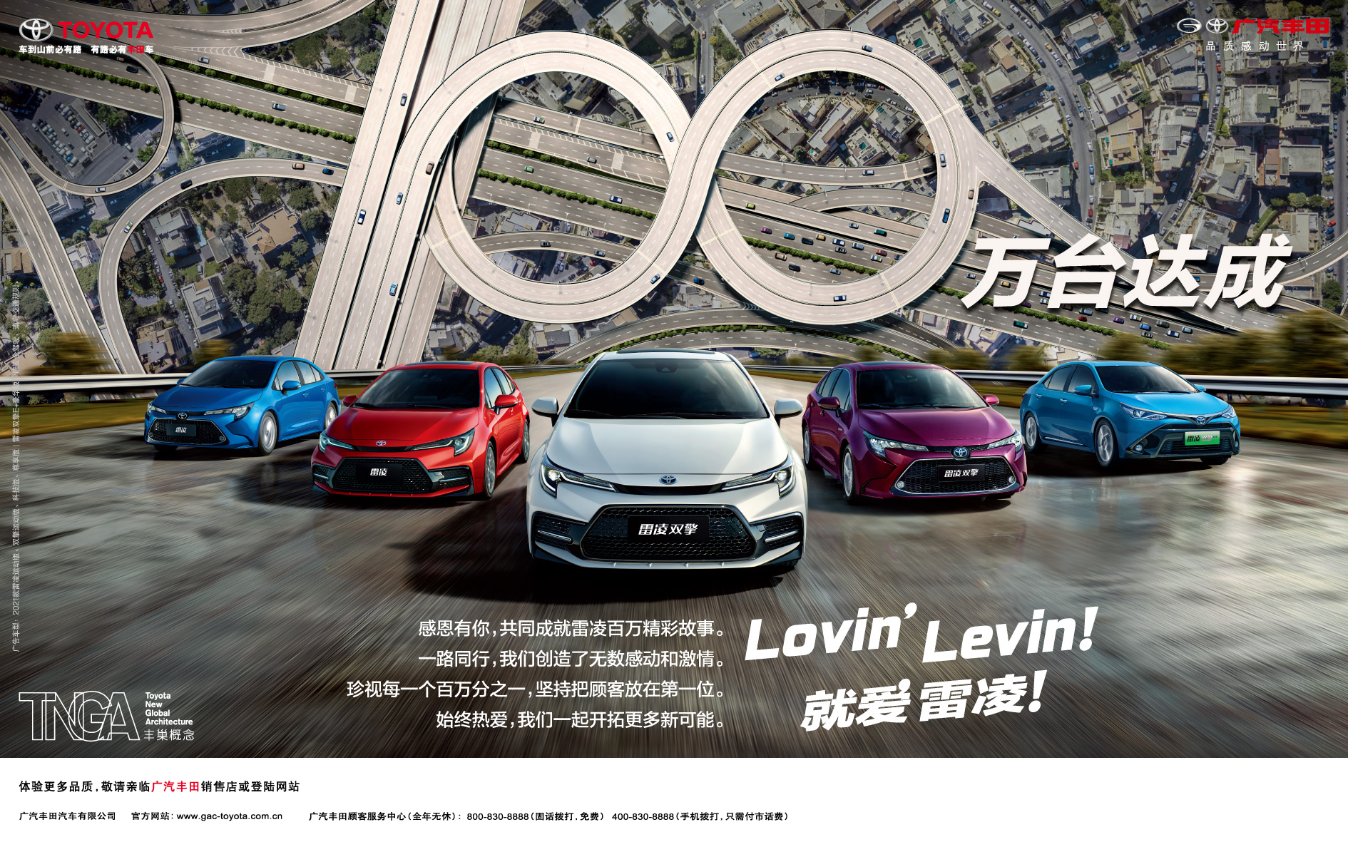 在消费升级潮流之下,雷凌家族依靠丰田TNGA架构不断实现价值提升,广受市场赞誉。其原因在于,雷凌并不是简单地完成产品功能叠加,而是能有前瞻性地预见消费者的需求,以优秀的造车工艺、先进的科技水平持续为消费者带来惊喜。自2014年国产上市,雷凌家族在上市6周年之际收获100万台销量达成的成绩单,换算下来相当于每三分钟就卖出一台车!