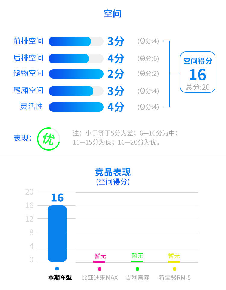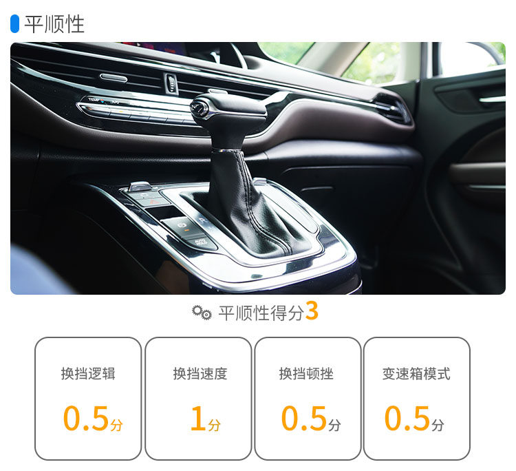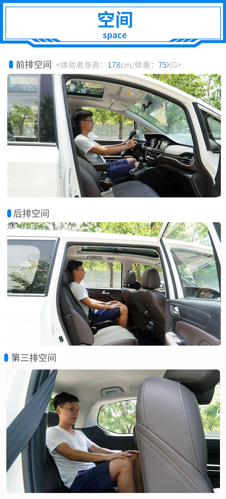 小结:从实际的体验来看,GM6很好的将MPV车型的大空间优势发挥出来,整体的乘坐空间非常出色,并且第三排放到的设计也是加分项,因此总体得分较高。