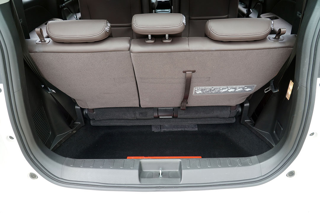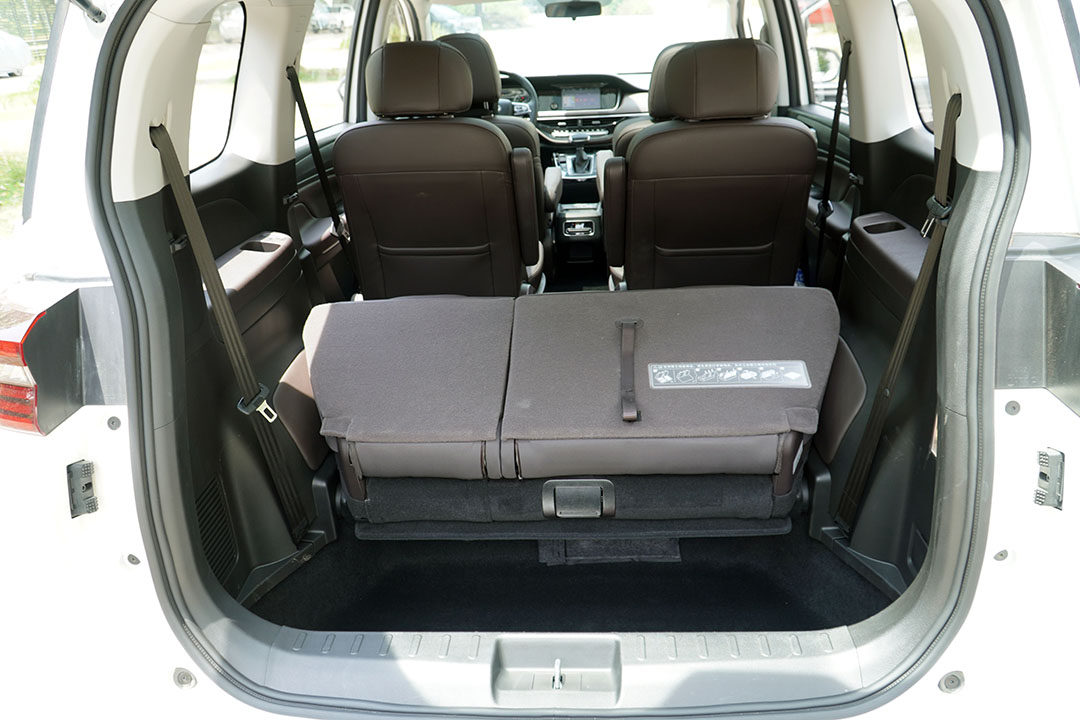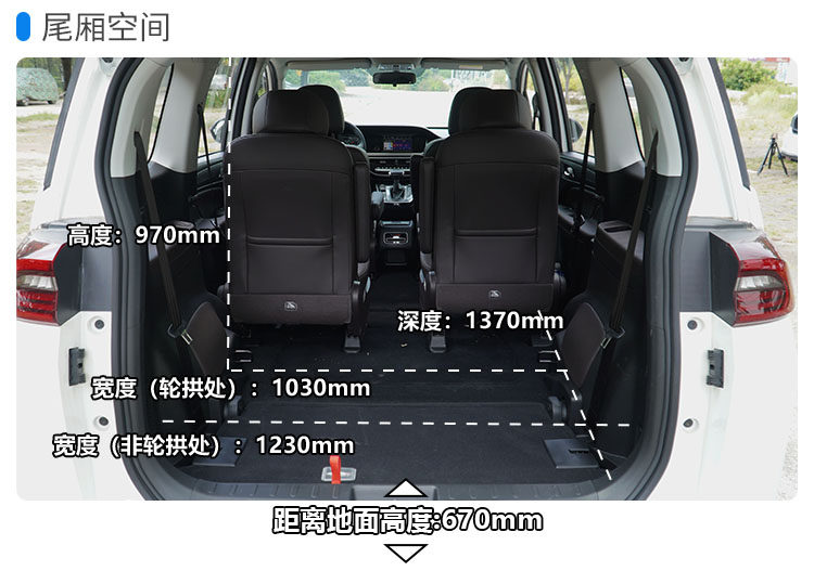 这是一个神奇的尾箱,在第三排未放到的时候,GM6的尾箱只能放两个20寸的小行李箱。不过GM6的第三排可以巧妙的折叠起来,放到在尾箱下方深处的位置,从而形成了一个几乎全平的第三排,搬运洗衣机这些大件物品也不在话下,可以说是十分方便了。