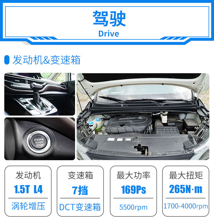 动力方面,传祺GM6搭载的是1.5TGDI高性能发动机,代号为4A15J1。这款发动机采用缸内直喷和低惯量涡轮技术,最大功率为169马力,匹配了7速双离合变速箱,拖动这近1.7吨中的GM6有点抓捉襟见肘。