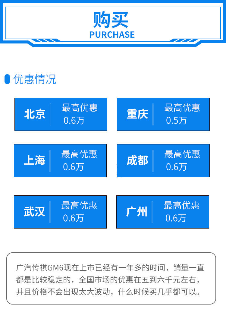 小结:结合数据与实际驾驶体验来看,传祺GM6虽然在动力和隔音方面并不占优势,但是舒适性方面依旧可圈可点,有着MPV的那种沉稳和从容,能够给到消费者较为惬意的享受。