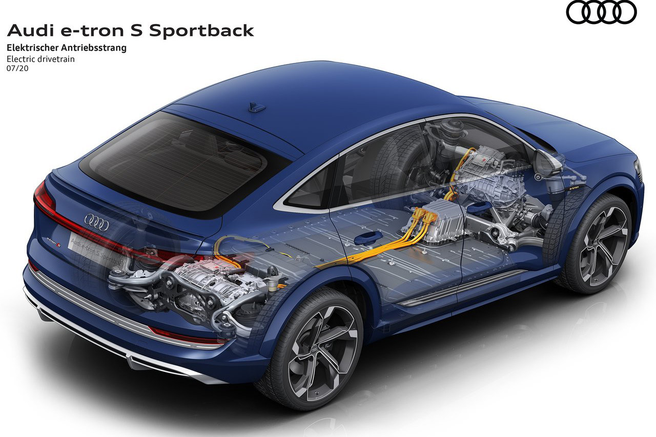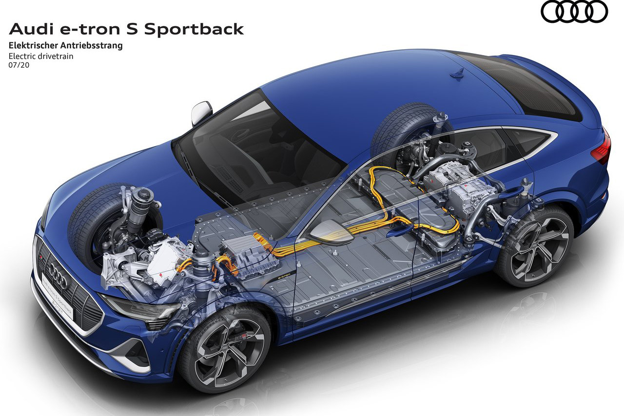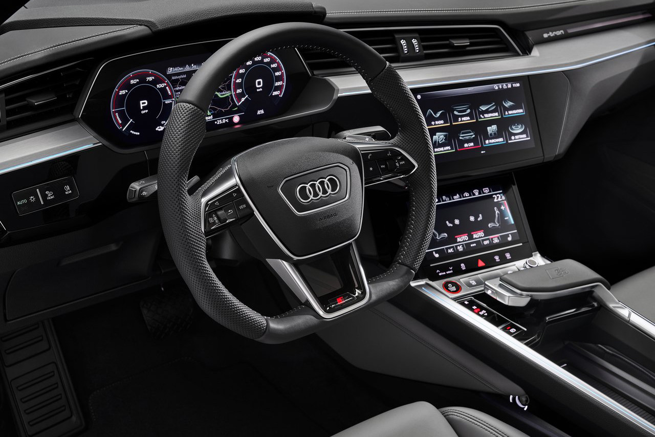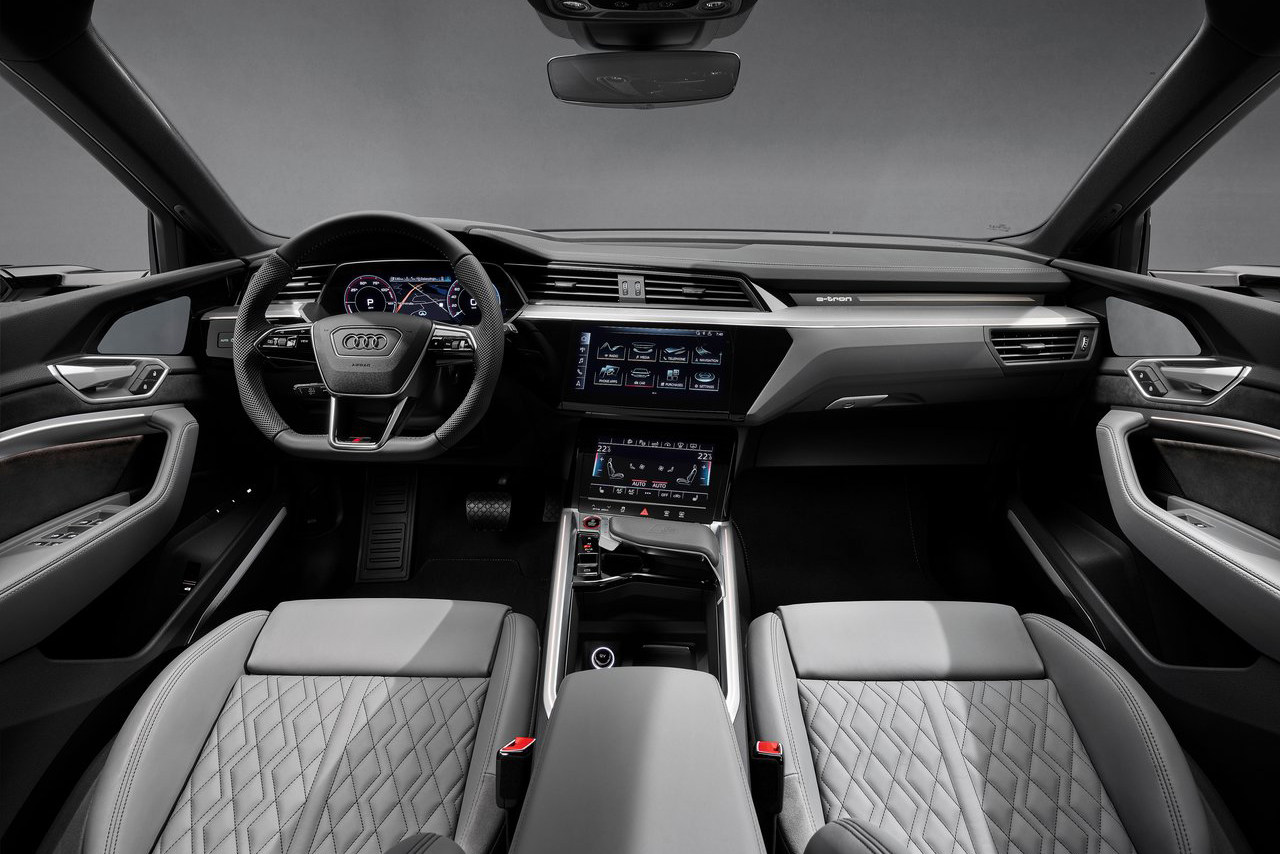 轮胎的标准规格为20英寸,胎宽为285mm,而21英寸/22英寸则作为选装。新车采用6个活塞的固定卡钳,喷涂为传统的黑色,并且用S徽标进行身份标榜。当然,如果为了突出的视觉效果,也可以喷涂为橙色,并用e-tron徽标装饰。其中,刹车片仅仅150毫秒就与制动盘完全接触,为车辆起到优异的制动效果。