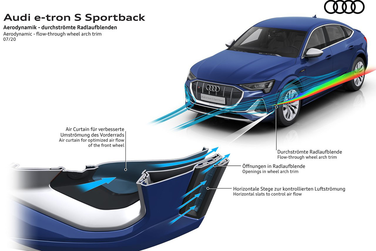 最终,奥迪迪e-tron S Sportback的风阻系数仅为0.26,而奥迪e-tron S,风阻力系数仅为0.28。