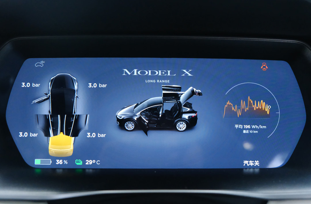 17英寸中控大屏是Model X内饰的亮点,除了实现基础的车机的交互作用,大屏还覆盖了各类驾驶参数显示的调整,驾驶辅助功能的开闭也整合到通过大屏实现控制。