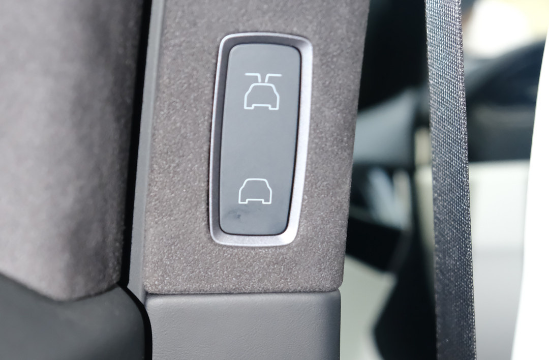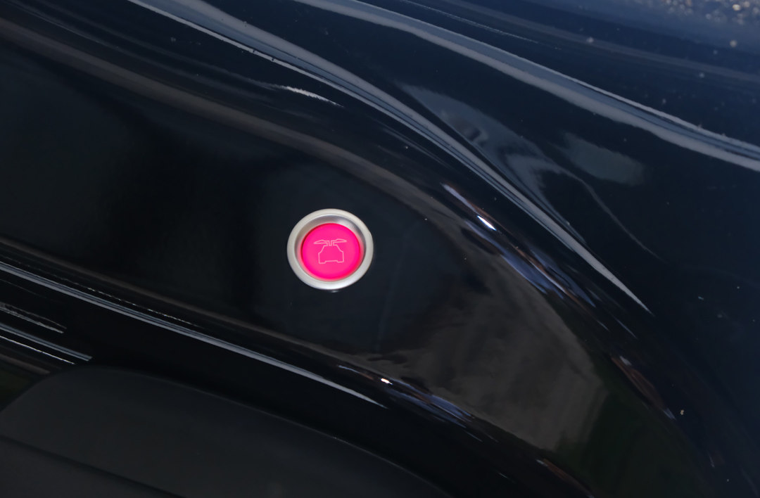 Model X的鹰翼门通过B柱内侧的按钮控制开启和关闭,为了方便乘客在下车后关闭车门,在车门下方同样配有控制按钮,这一点人性化十足。