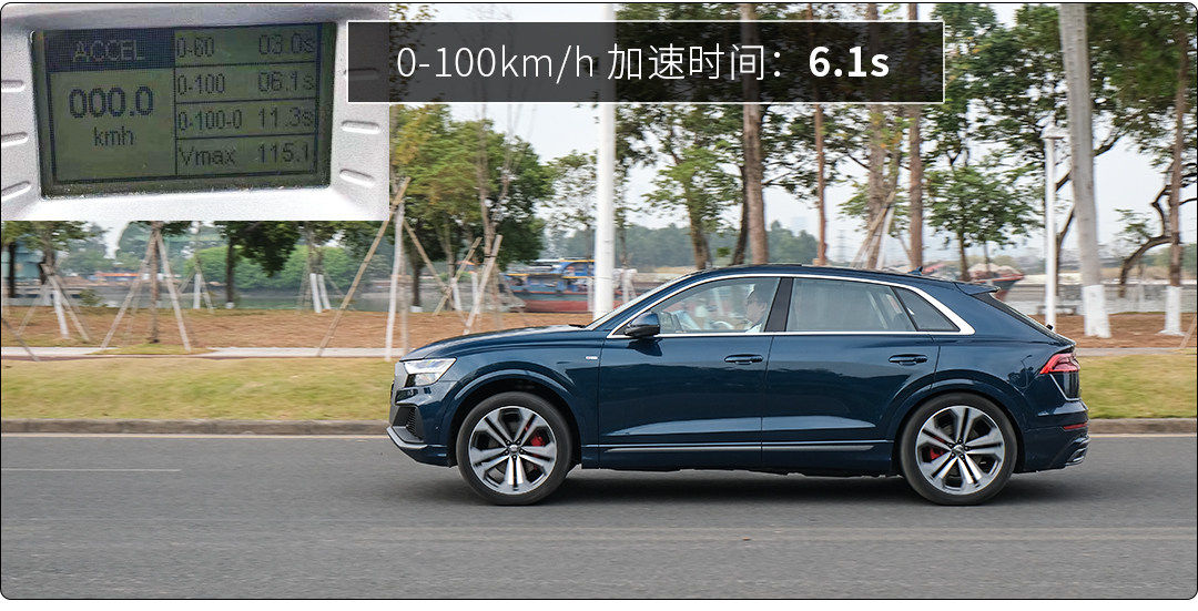 与一台车最好的交流方式就是去驾驭它,百公里加速时间达到6.1s的奥迪Q8,在油门踩下的瞬间虽然并没有给到十足的推背感,但是8AT自动变速箱在达到60km/h后仍拥有不可小觑的加速度。将驾驶模式切换至运动,随着底盘降低、转速表指针更加活跃地跳动、悬架和转向变得紧绷,此时的Q8表现得战斗力十足。