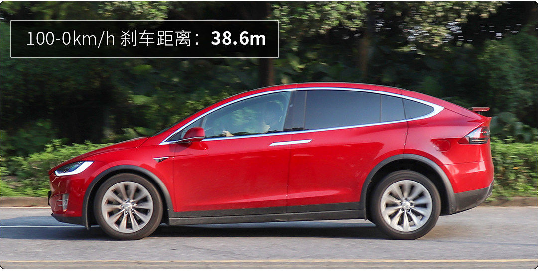 Model X在全力制动过程中,制动力很平稳,对于一辆车重超过2吨重的中大型SUV来说,没有跑偏的情况出现、车身姿态控制的也不错,最终测得百公里制动距离为36.68米。