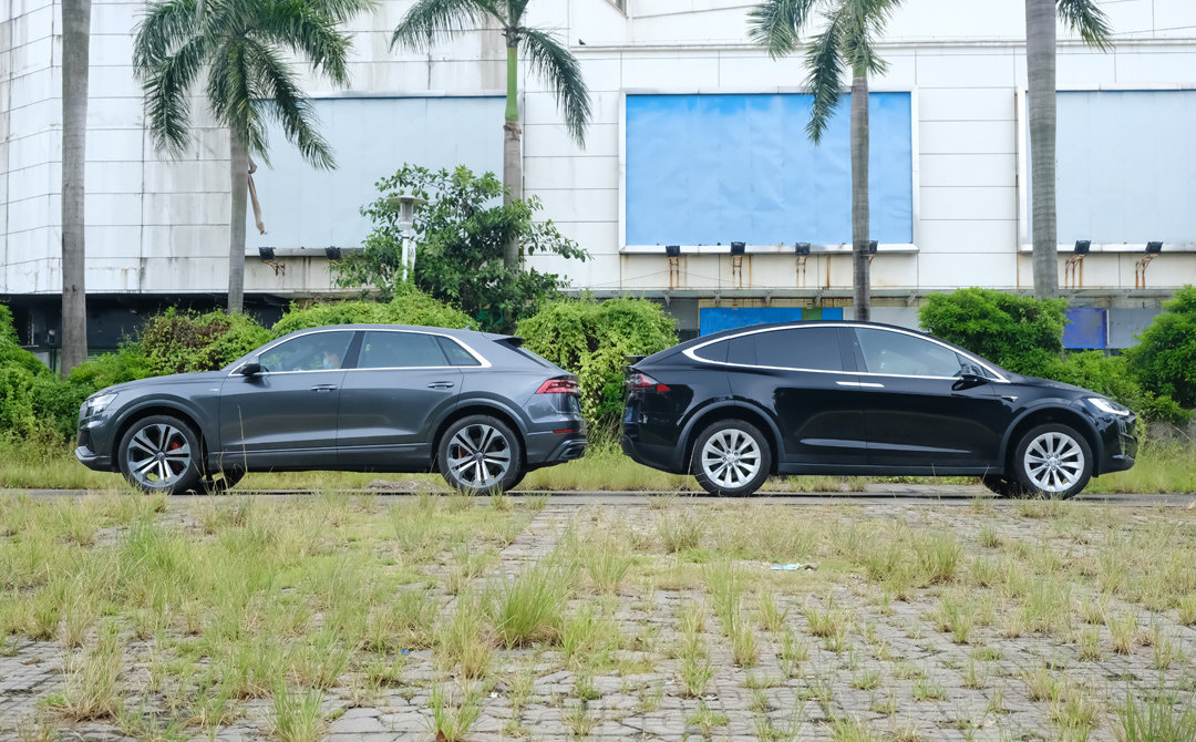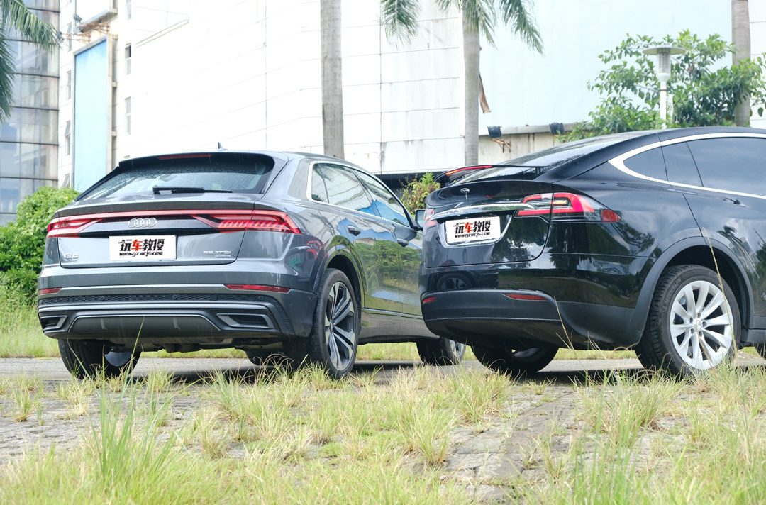 相比奥迪Q8,特斯拉前脸的设计异常精简,与较传统燃油汽车的前脸不同的是,Model X的进气格栅缩到了最小,并突出了品牌标志。当然,这也是得益于纯电动汽车没有内燃机,所以才能在这辆SUV前脸上,大胆地作出如此超前的造型。