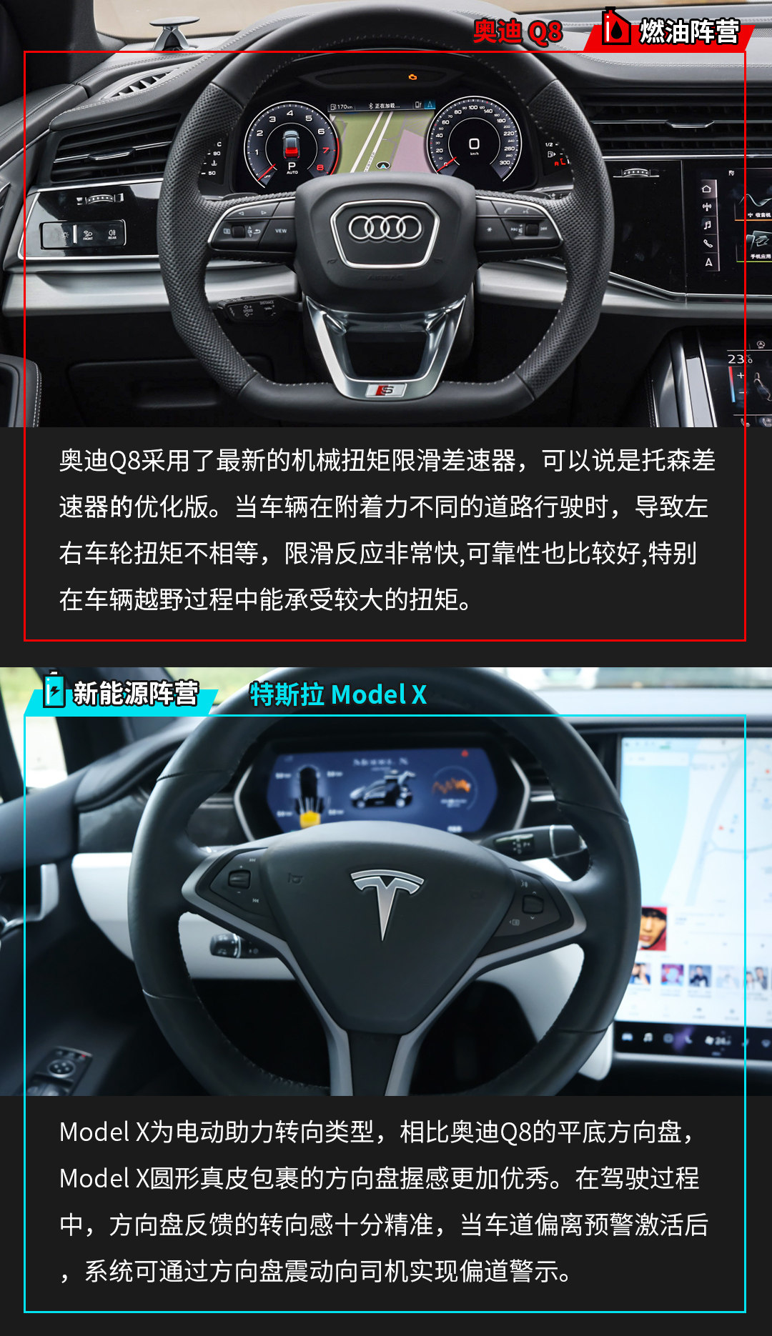 此外,Q8的动态全轮转向系统在低速行驶转向时,后轮会向相反方向转向,从而缩短转弯半径,而在高速过弯时,后轮同样会作出相应调整。在试驾过程中,老司机会体验到车尾有良好的循迹感,在系统的辅助下可以降低转向不足的情况发生,提高整车的稳定性。