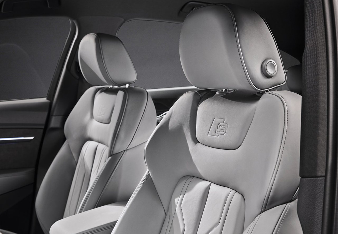 来到车内,整体来看,e-tron S 车型沿续了普通款的虚拟座舱风格,但一些细节的变化给人惊喜不断的感觉。车内标配电动可调节运动座椅,Nappa材质座椅上增加代表性能的S标识,表明这款性能车的身份。再加上12.3英寸数字仪表盘+12.1英寸信息娱乐显示屏+8.6英寸空调控制屏幕的联屏组合,车内的科技感和豪华感爆棚。
