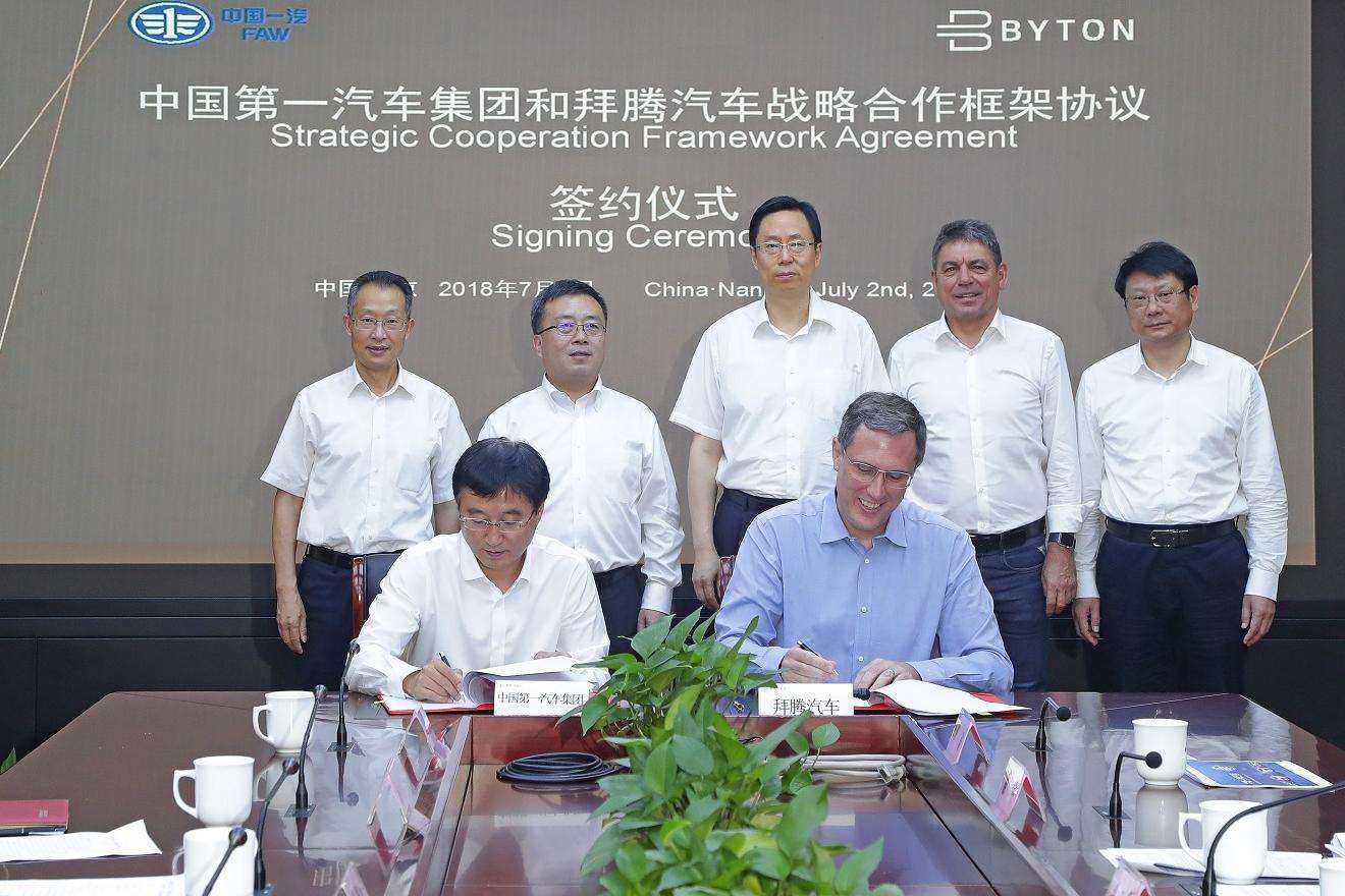 2018年的6月11日,拜腾汽车宣布完成B轮融资,融资总额达5亿美元,投资方为一汽集团、启迪控股、宁德时代、江苏一带一路投资基金,其中一汽集团投资2.65亿美元。