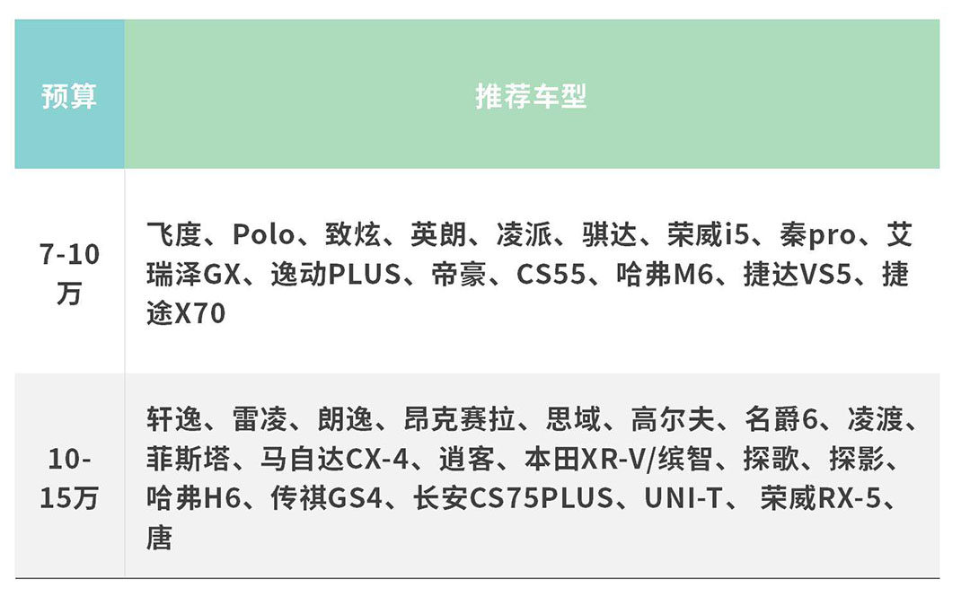 也就是说,毕业多年的年轻人收入在6k-10k左右,购车预算在5w-15w左右。当然,这个收入更多的是看可支配收入,也就是除去基本生活开支以及其他支出外,可以用来自由支配的收入。首付6w,月供3k就可以支持买一台主流的普通家用车,并且生活还不至于因为买车变得穷困潦倒。