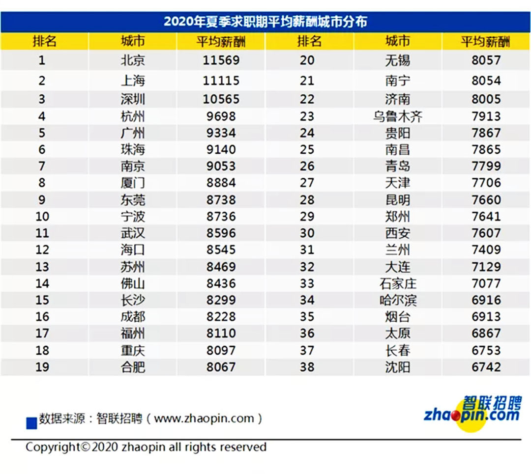 如果我们把这个问题落实到普通男生身上,25岁也就是毕业三年左右。根据知名招聘网站发布的《2020年夏季中国雇主需求与白领人才供给报告》报告显示,今年夏季只有北上深这三个一线城市平均薪酬超过一万元,广州的平均薪酬是9334元,甚至还略低于杭州.......