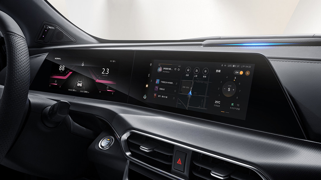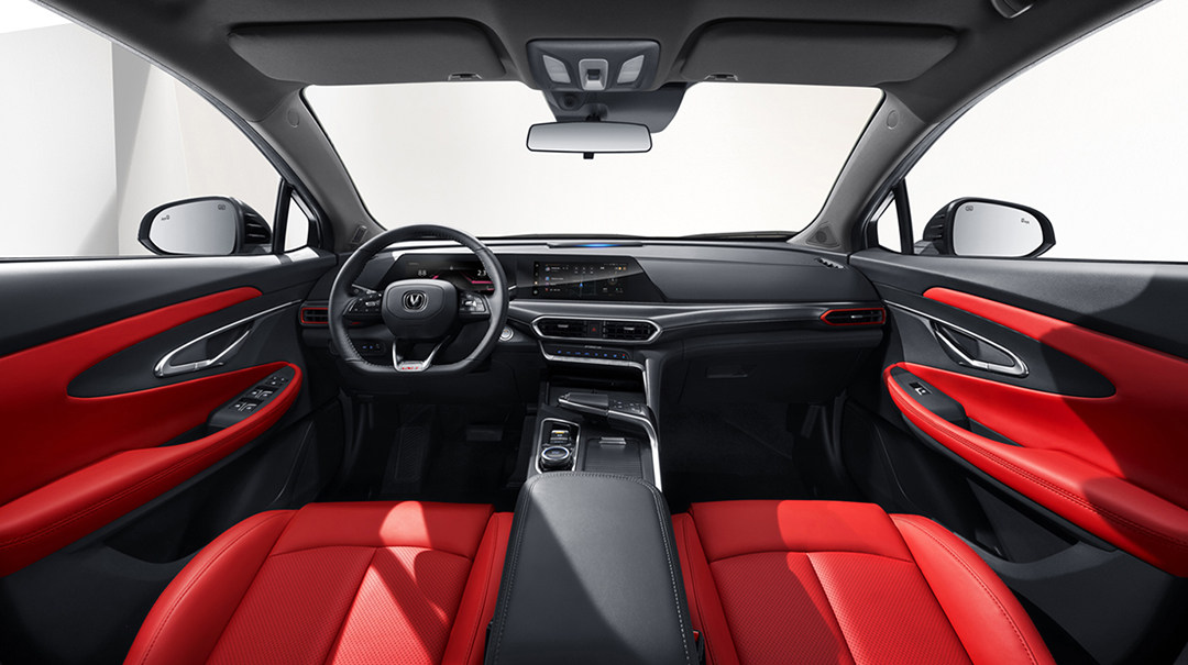 从外观上看,或许我们可以把它当成雷克萨斯的旁亲,UNI-T的外型特点极为科幻,前脸夸张的大嘴,确实是吸睛利器;内饰看起来很清爽,并没有提供很多的按键,双联屏的设计很前卫。