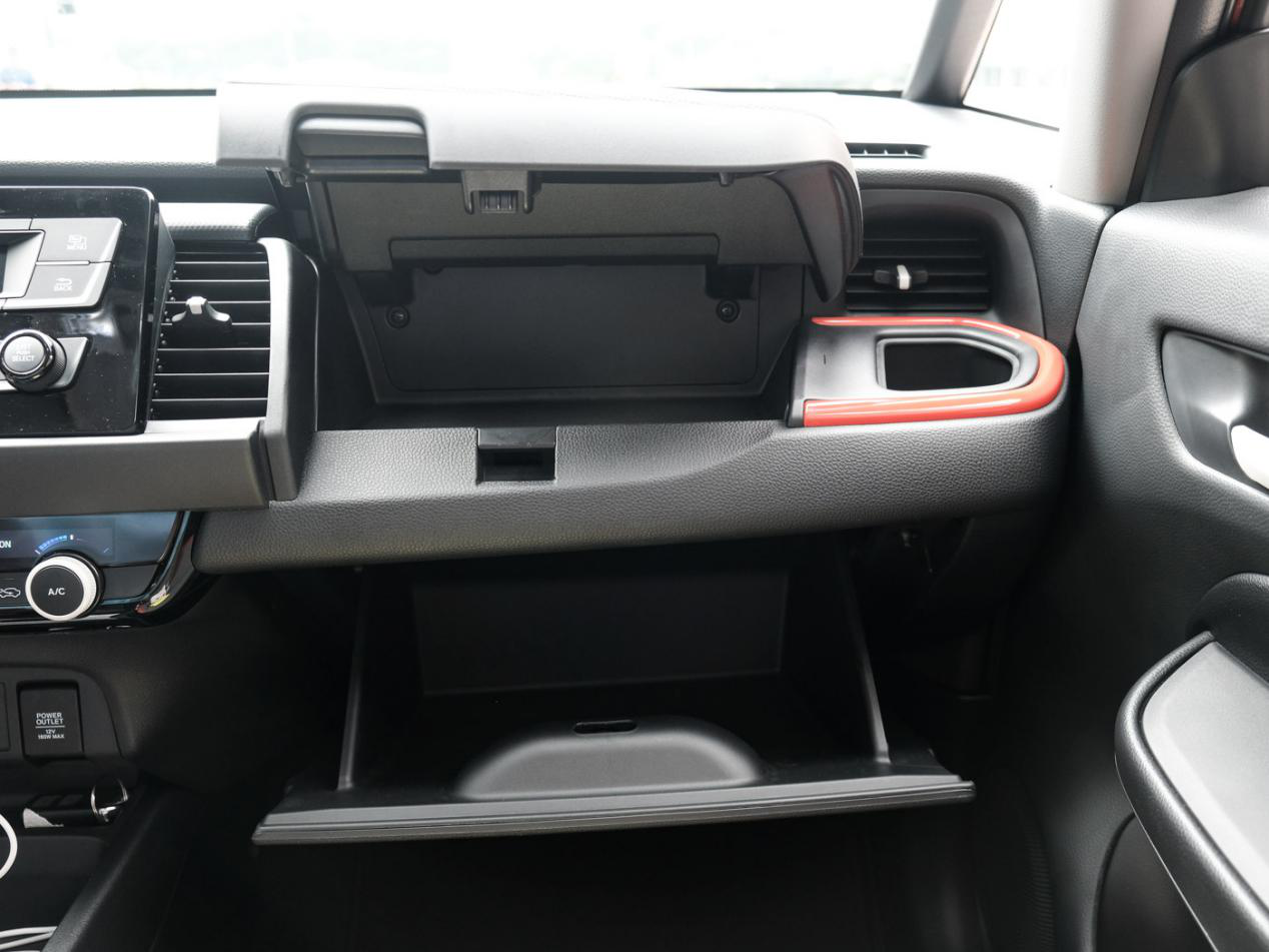 内饰储物空间设计,本田一直都是顶尖高手,麻雀虽小五脏俱全,副驾驶不但有多个杯架,还有上下双开分体手套箱。