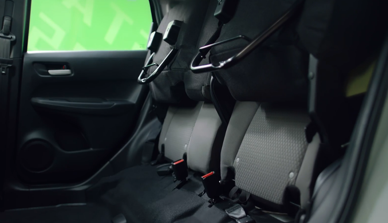 飞度后排座椅不但可以靠背方平,坐垫也可以向上折放,储物空间设计真的不服不行!