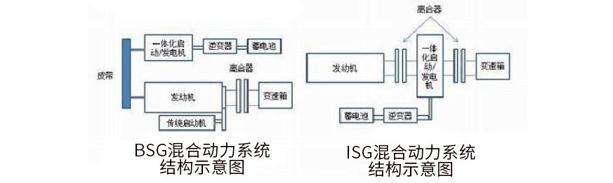 不难想象,ISG电机更加高级一点,因为它是单轴并联的形式,发动机、电机、变速箱是一个整体,可以看作是高度智能集成化的产物。而BSG电机是双轴并联的形式,发动机与电机通过皮带相连,有了皮带这个限制,电动机协助动力输出时便不能发挥最大效率。