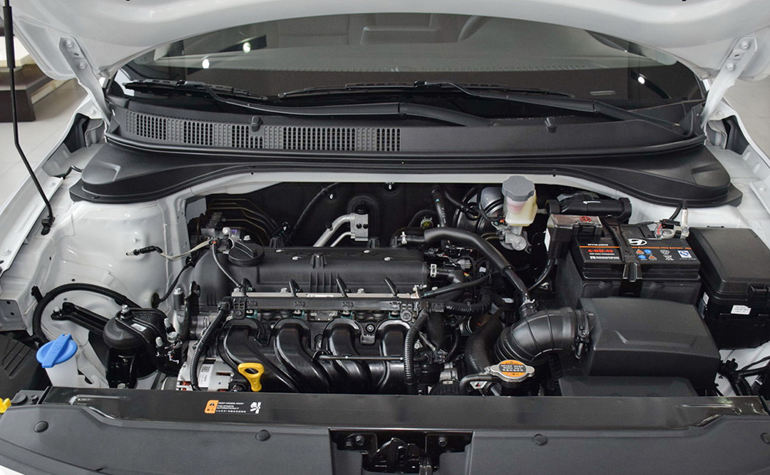 来到车前面,我们打开发动机盖看看,我们的悦动搭载了1.6L自然吸气发动机,最大有123马力,有6挡的手动自动供您选择。这个发动机虽然没有太多的新技术,但是胜在稳定可靠油耗低,韩系车的品质其实都是有口皆碑的,最近在美国还拿了新车质量报告的前几名,我们店内因为质量问题回来修车的那真是少之又少。