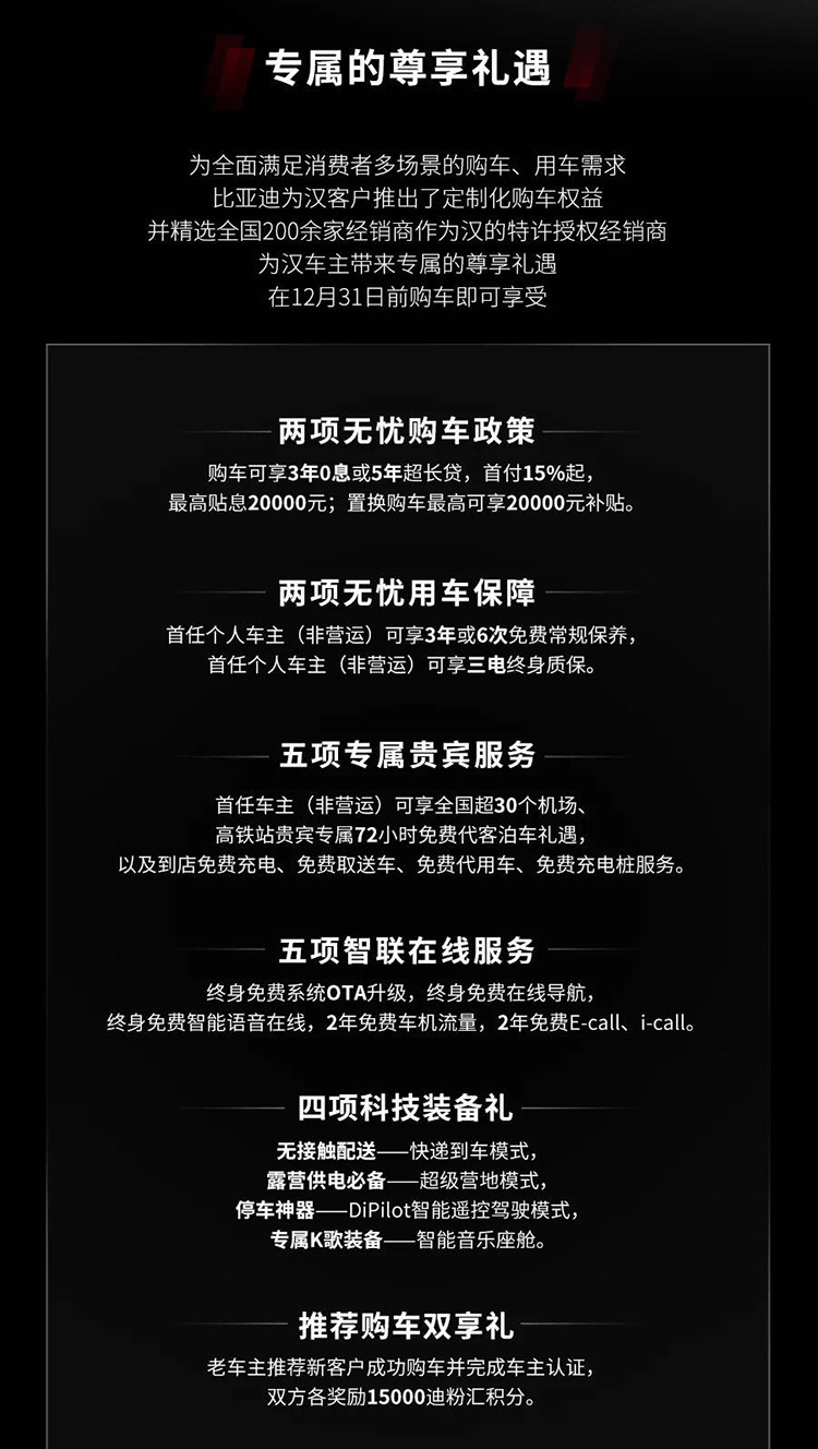 另一厢,据比亚迪官方表示:在未来,将会在5G技术的基础上针对EV车型推出5G版本,并且将在全国建设超100家商圈体验中心,与此同时,为比亚迪汉车主提供2+2无忧计划以及5+5尊享服务。