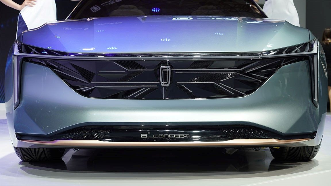 前脸部分,B² CONCEPT强调一体化,格栅即大灯,大灯即格栅,因此我们能看到两者融合度较高。其中大灯借鉴了古代兵器的“戈”型,灯带贯穿整个格栅,同时另一侧延伸至下方。