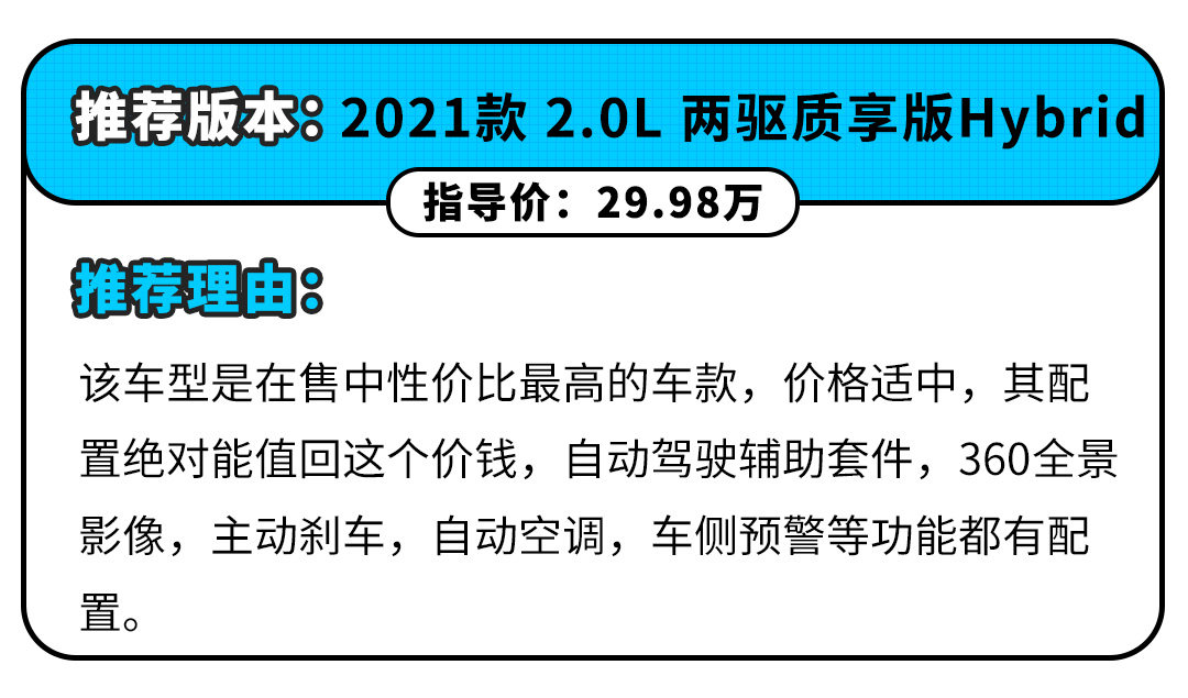 2.0L 两驱质享版Hybrid车型是在售车型中最具性价比的车型,其价格适中,并搭载了AcuraLink®全能智驾系统,包括自适应巡航系统,主动刹车,车道偏离预警等。在配置上也做到了物超所值,像车侧盲区影像,HUD抬头显示等都有配置。