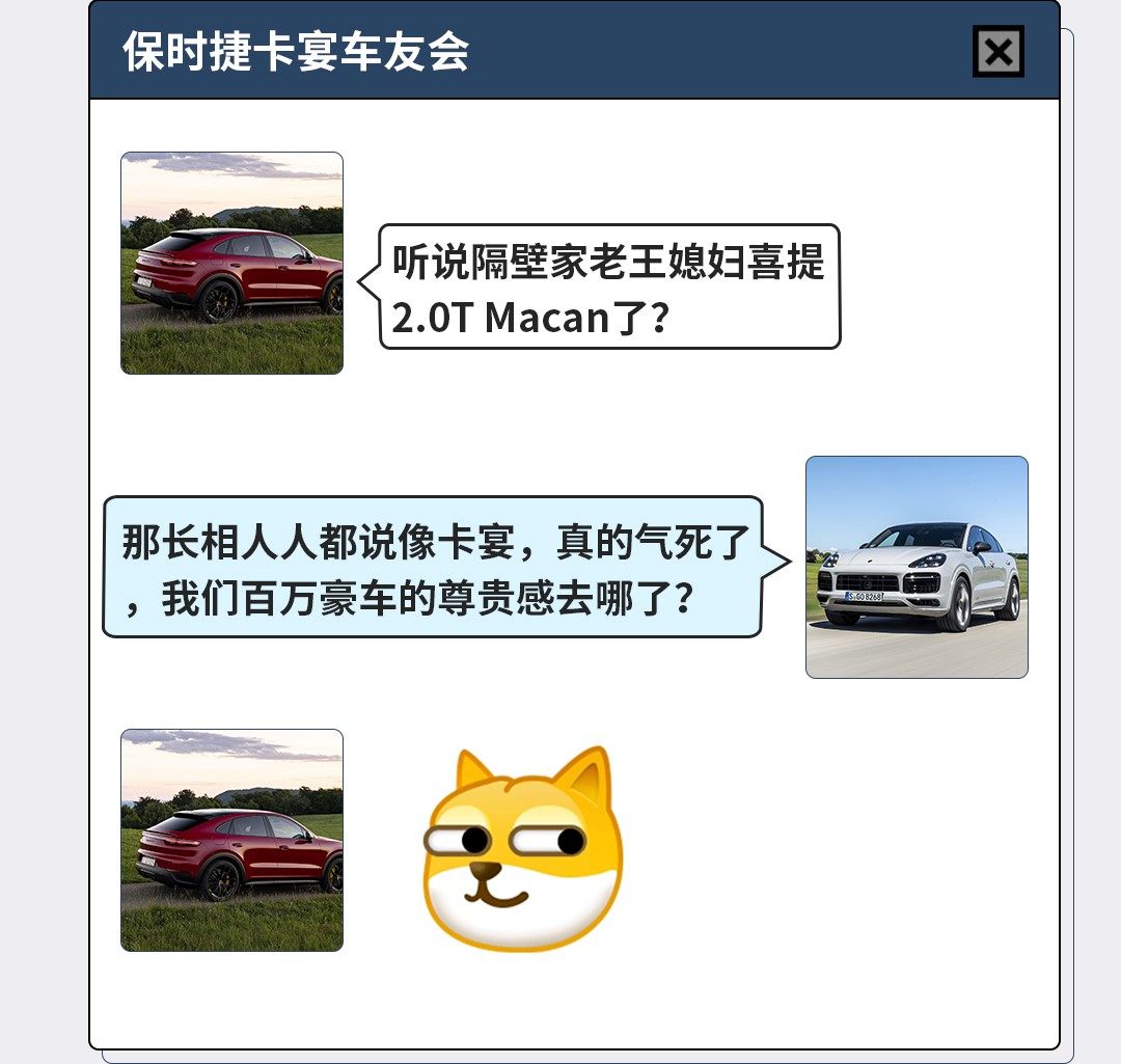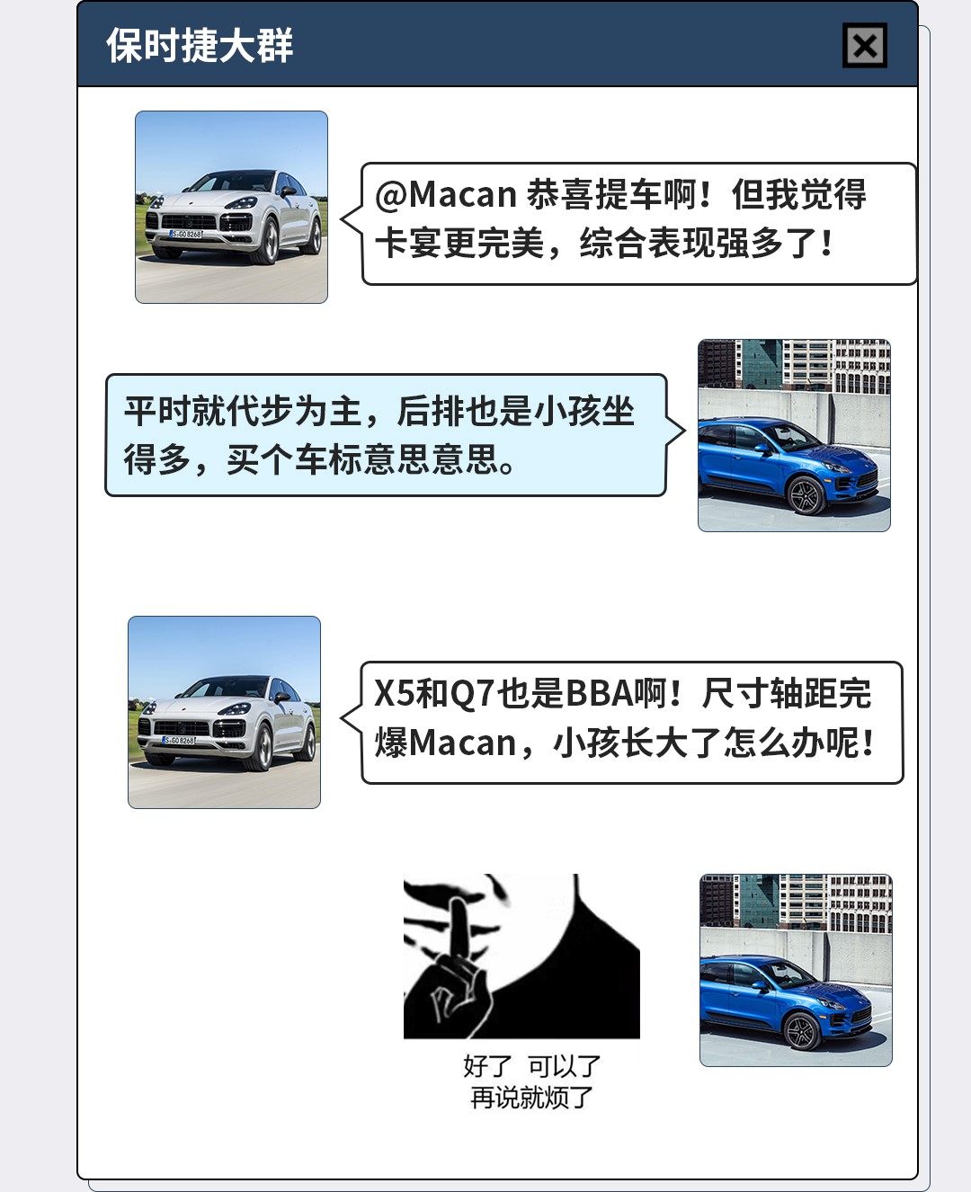 此外,Macan除了最入门的2.0T车型之外,还提供S、GTS和Turbo这些进阶版本。其中售价为92.5万、马力高达440匹的Macan Turbo,更是常被用作与售价为91.3万的最入门版卡宴作对比,所谓鸡头凤尾的选择。可见两车各有优势,卡宴口碑更强,空间更大,Macan性价比更高,更接地气,只要自己喜欢,选谁都有道理。