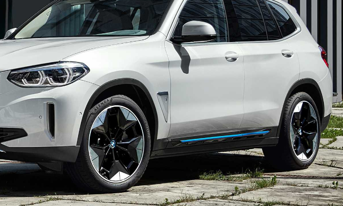 车身侧面来看,这是与宝马X3最为相近的地方,这样的设计也让iX3不会因太超前的设计而显得不耐看,简洁是其侧面的最好描述。不过,新车在细节方面同样有所考究,银色装饰板、底部蓝色装饰条等,都丰富了该车侧面的层次感。