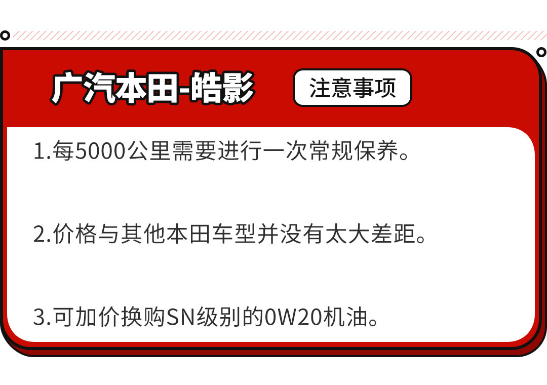 皓影跟大多数本田车型一样,首保都是需要在5000公里或者三个月的时候进行,然后每5000公里或者6个月进行一次常规保养,保养频次相对会多一点。