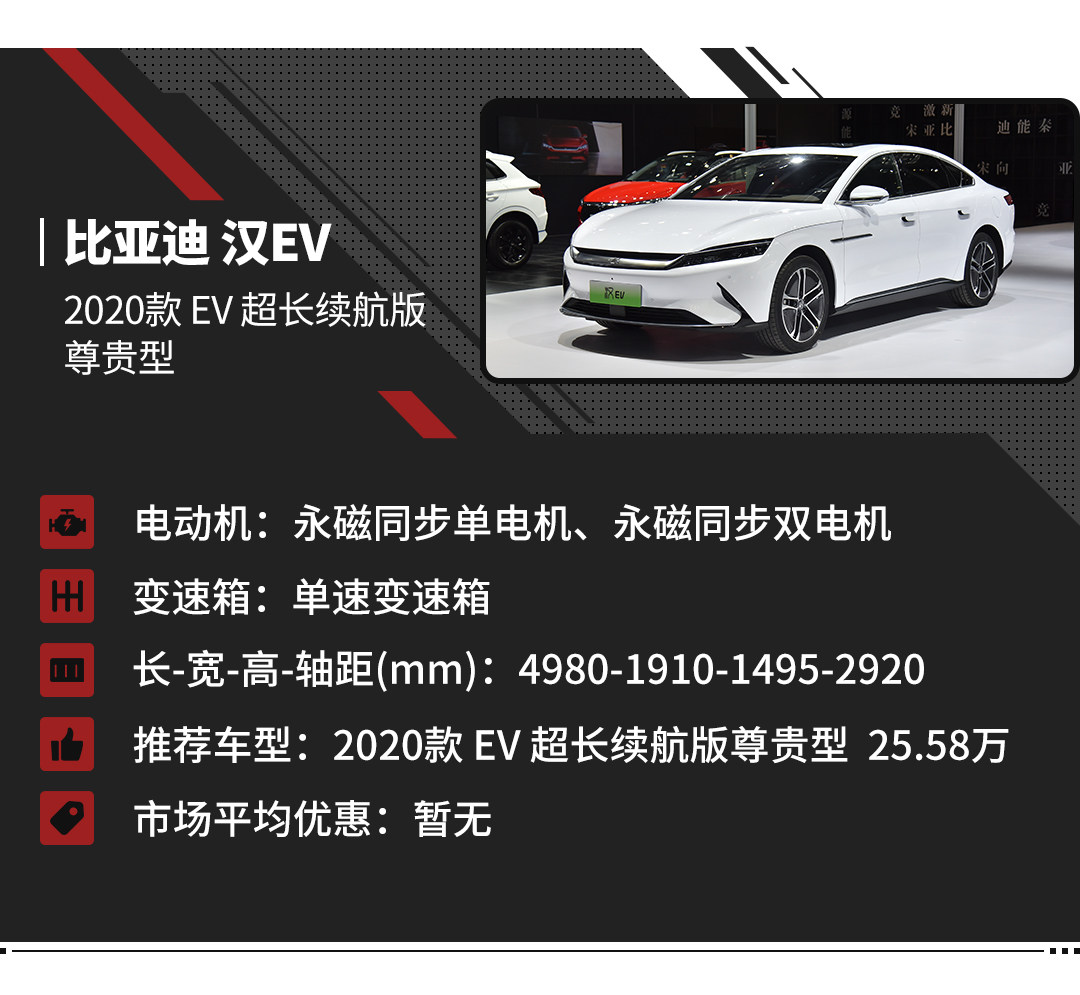 对于比亚迪来讲,汉EV是比亚迪重整新能源布局的重磅产品,更是打开了新能源轿车的高端市场,目前在20万以上乃至30万左右的纯电轿车中,除了特斯拉Model 3和小鹏P7之外,能够选择的产品屈指可数。
