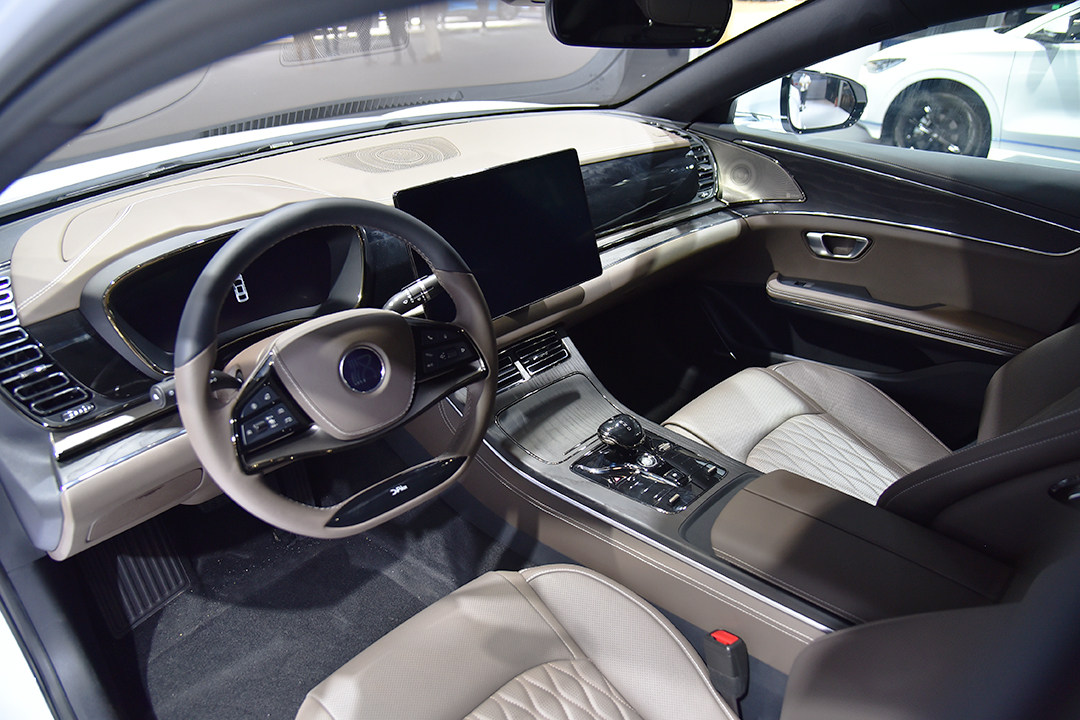 为了凸显汉的旗舰身份,环抱式智能飞行舱是比亚迪诠释新中式豪华的方式,包括得以保留的旋转式中控触摸屏,进口天然牛皮制作而成的Nappa真皮座椅、拉丝和丝网印刷的真铝制作工艺,这些都由米开勒·帕加内蒂打造,并提供朱雀红、麒麟棕和苍穹灰三个车厢配色可选。