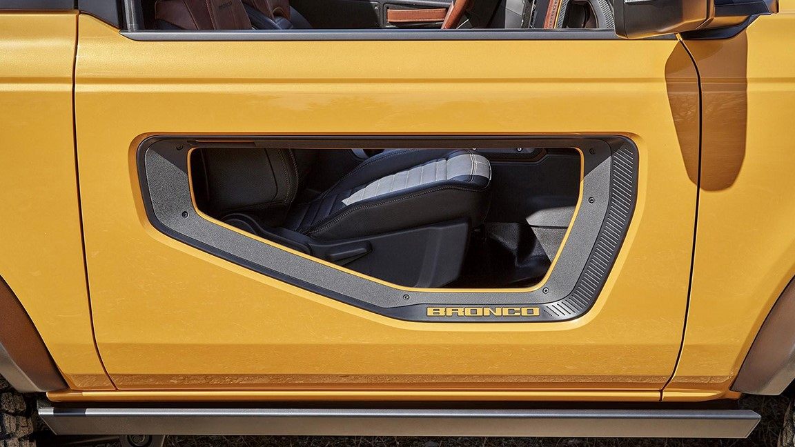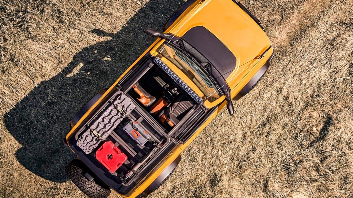 它就是冲着Jeep牧马人而来的,全新福特Bronco提供两门和四门版可选,其车门、侧/尾窗和车顶等位置采用了可拆卸设计,同时两个版本均配备无框车门,方便各区域的拆卸,并可通过不同的拆卸搭配来满足各种储物需求。