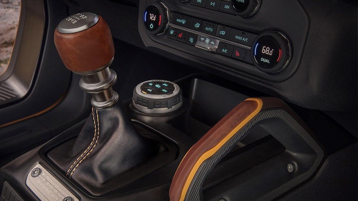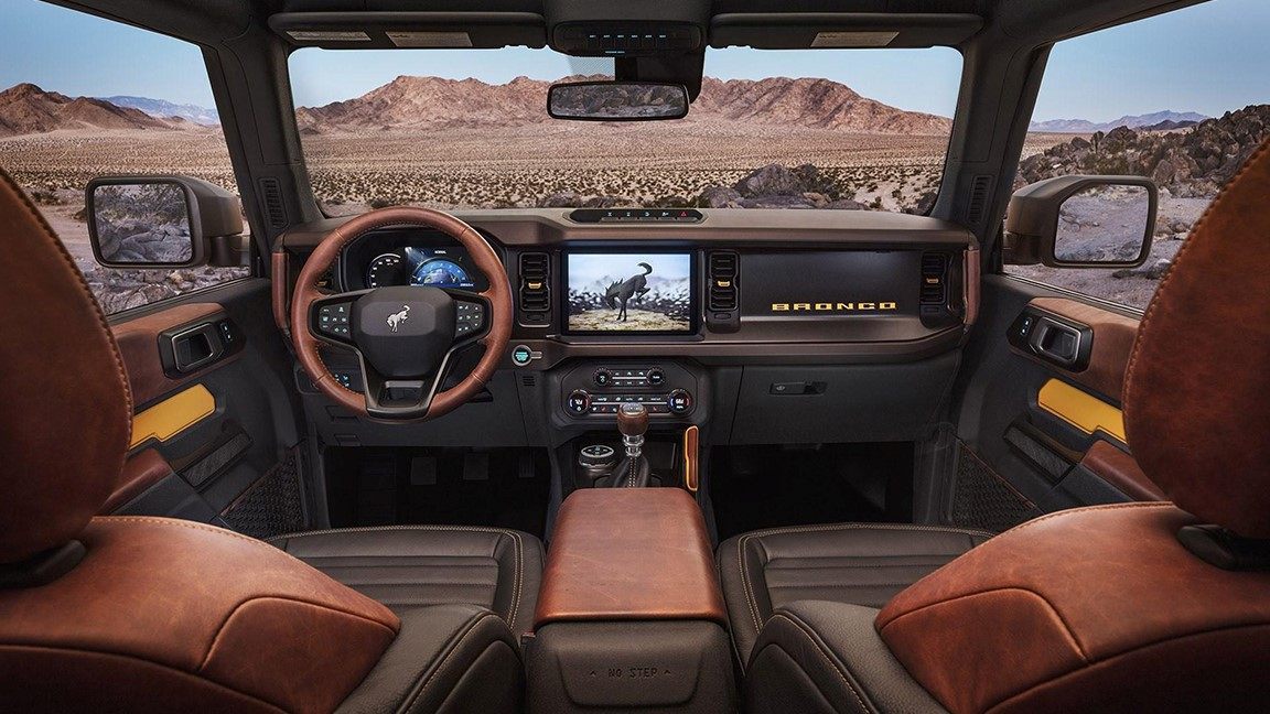两门版Bronco的内饰风格与外观相呼应,还是那种复古又时尚的气息。新车大量的运用了马鞭棕配色以营造复古氛围,犹如美国老派越野车的风格。