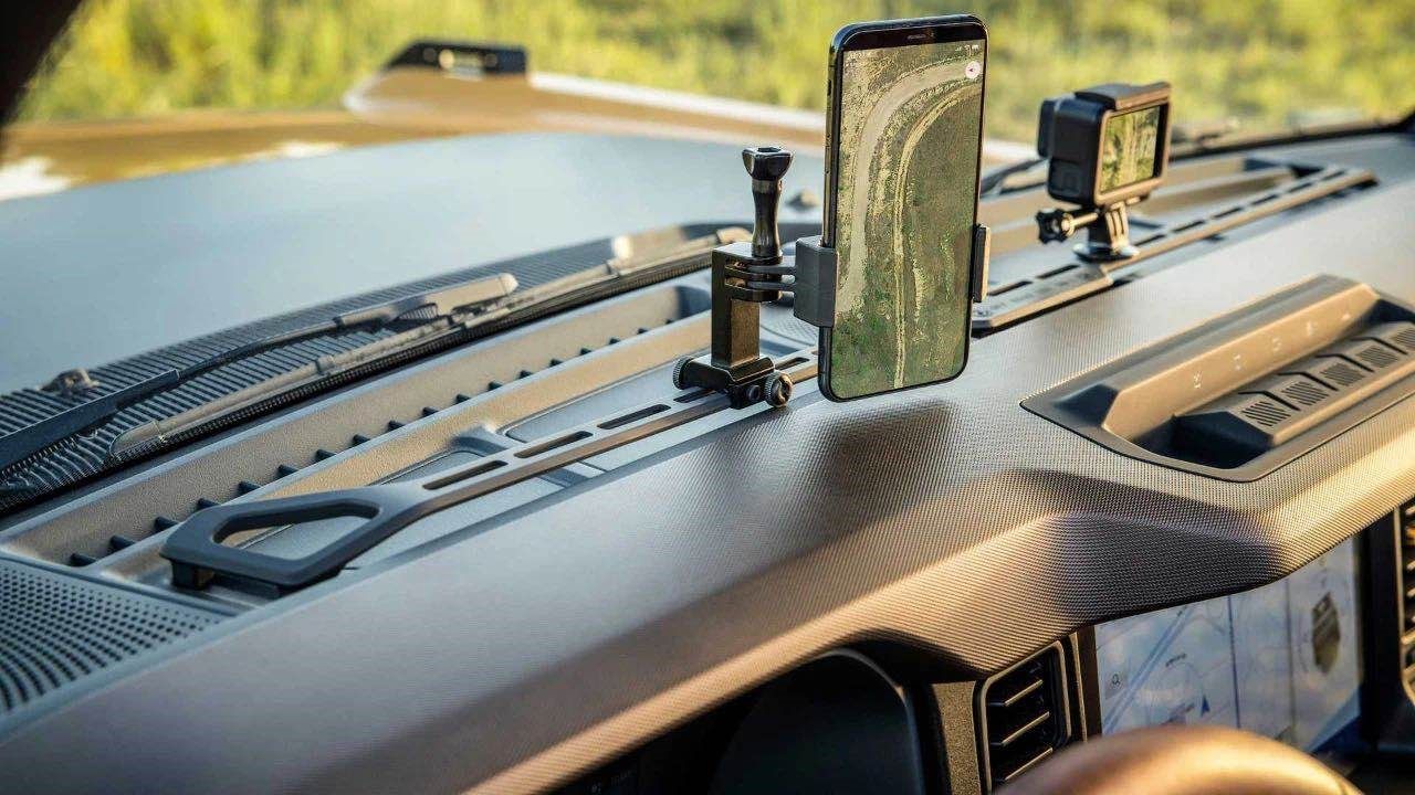 而在创新方面当然与时代接轨,除了大尺寸仪表盘和标配8英寸中控屏+Snyc 4系统,更有意思的是新车在中控台提供了设备支架,例如当下流行的运动相机或是手机等都可以被固定,意图非常清晰,就是记录户外生活。