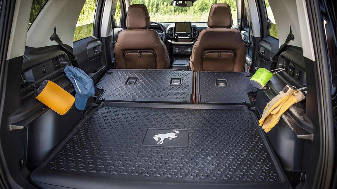 不过,Bronco Sport的前排座椅后方提供了类似储物背包的设计,在一定程度上解决了杂物摆放问题。不仅如此,其后排座椅的坐垫还支持开启以提供更多的储物空间,不过从图中可猜测,坐垫的厚度不太理想,在颠簸路段可能会影响舒适度,或是下方杂物产生异响。