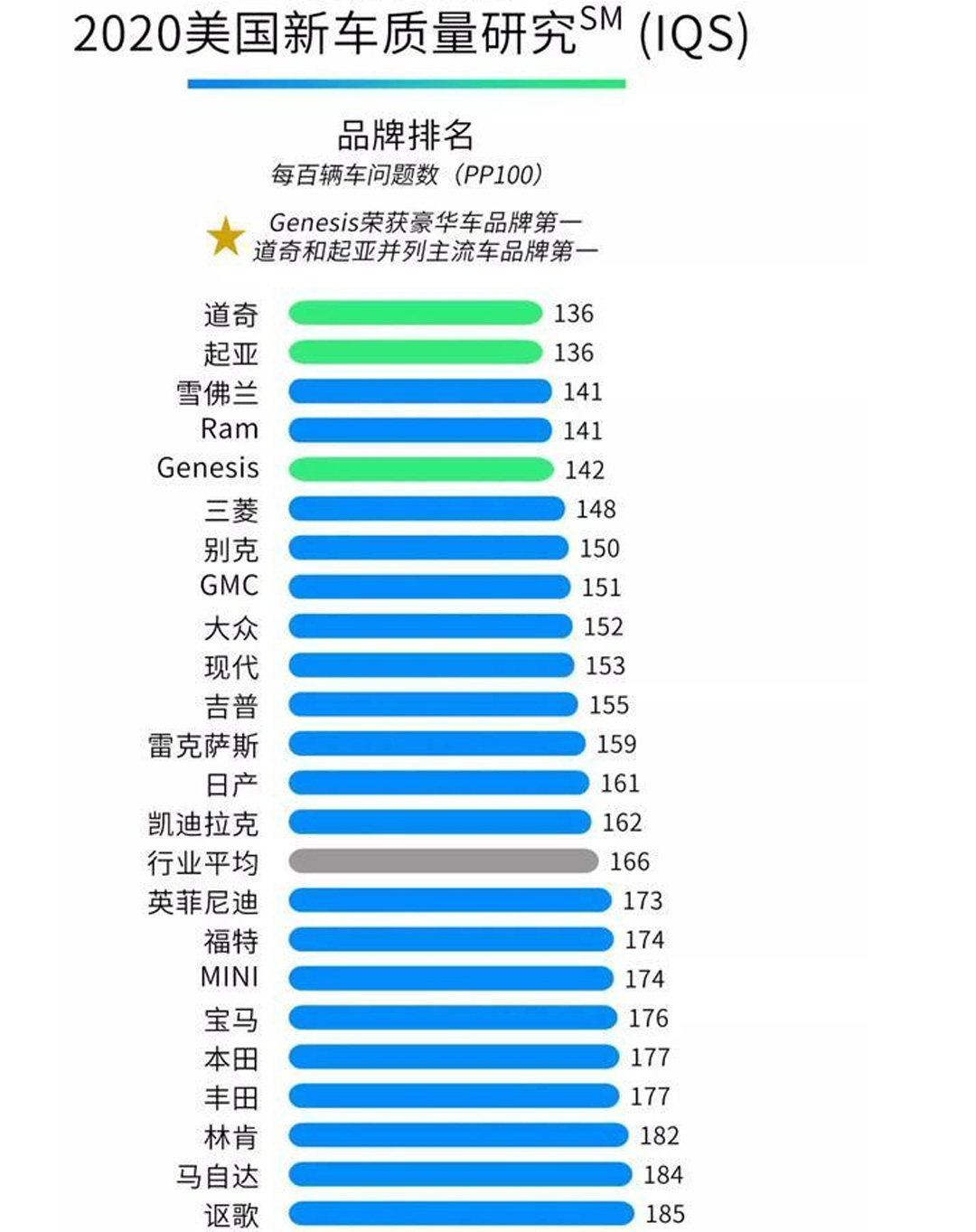 而君迪这份美国新车质量研究存在着较多的美国地方主义倾向,所以并不适用于中国市场,看个热闹即可。而细化到品牌新车百辆故障数方面,则是有一定的借鉴意义。