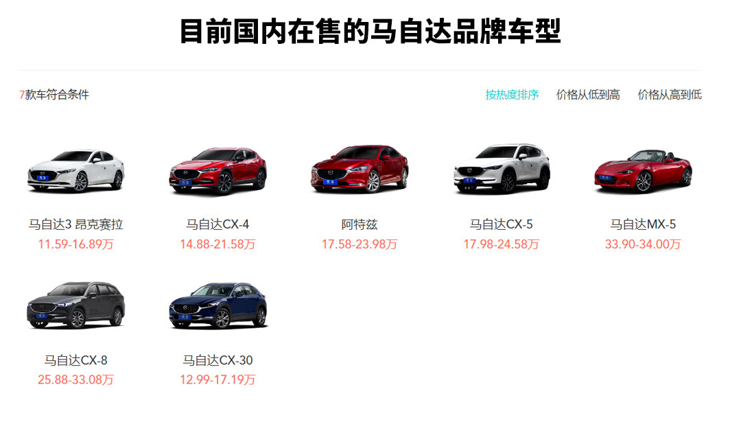 同时马自达车型选择较少也成为了消费者回购率不算高的重要原因,以轿车为例,马自达旗下仅有长马的昂克赛拉和一马的阿特兹,在这定位之上则完全空白。首先可选车型少不说,在车主打算更换定位更高的车型时,马自达也并不存在相应的产品提供,那一些注重驾驶体验的消费者最终大多都会更换品牌,由“东瀛宝马”车主转变为宝马车主。