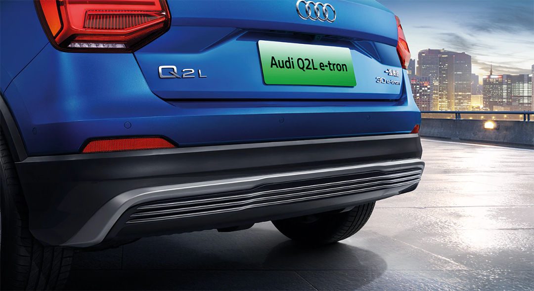 为了与燃油版Q2L做出区别,也无需为燃油发动机考虑进气散热问题,奥迪Q2L e-tron采用了e-tron家族专属的与车身不同色中网格栅设计,并作为了半封闭式处理,同时加强保险杠处的硬朗设计和植入Light日间行车灯,让Q2L e-tron的辨识度更高。并且悬浮式C柱也有“e-tron”的标志来表明纯电身份。