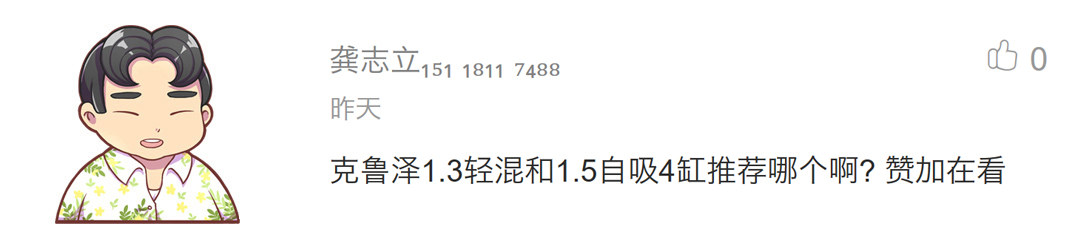非常感谢老铁的赞加在看,那么下面买买君就给您讲讲科鲁泽1.3T轻混和1.5L自吸四缸两种动力之间的区别。