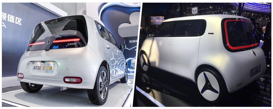 对比2018年亮相的欧拉R2概念车,实车在一些细节处还是做出了修改。例如概念车前脸是一条贯穿式的头灯设计,而且轮毂大面积的白色遮盖也非常有科幻电影的感觉;而实车大灯则改为了普通的大灯设计,轮毂也为考虑散热需求而更贴合现实,不过花瓣式的轮毂设计还是尽可能的贴合整车呆萌的设计风格。