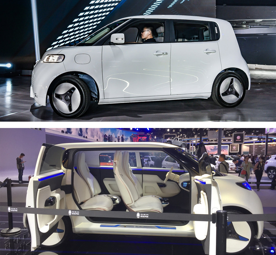 欧拉白猫的整体造型还是延续了概念车的设计,圆润的前脸非常具有辨识度。而设计师铃木先生也表示白猫的设计有参考一点日本K-Car车型的风格。