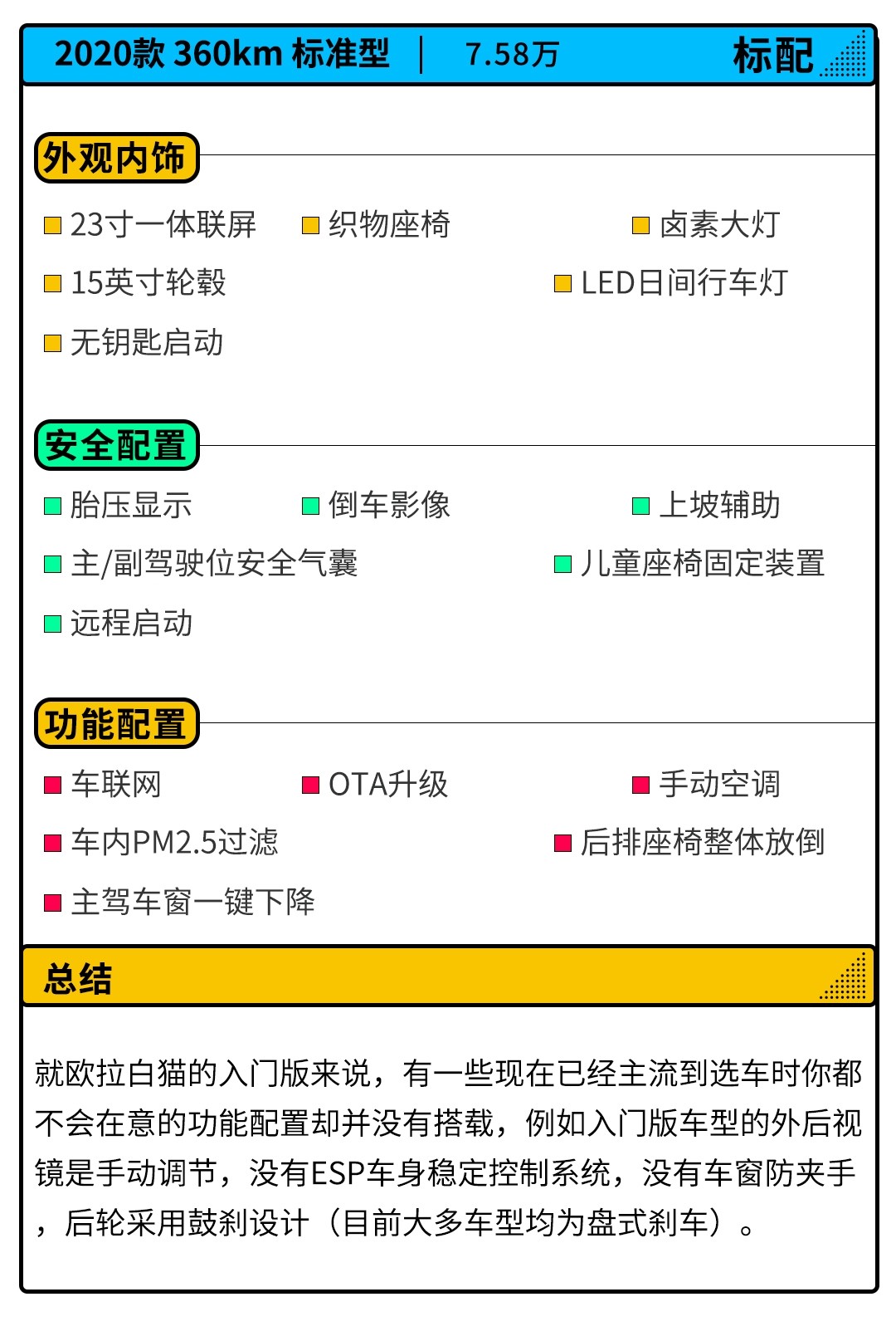 虽然车联网和中控屏这些功能性配置能够做到全系标配,还能在线看抖音、爱奇艺视频这些比较花哨的功能,但太多基础功能甚至是安全配置的缺失都令到白猫的入门版车型并没有较高的可买性,不过再高一个版本的配置水准则会全面很多。