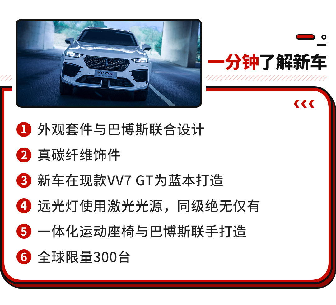 在这个月初,VV7 GT 巴博斯版就已经正式亮相,这是中国品牌首次跟巴博斯合作,一个是定位中国自主豪华品牌,另一个是号称“百奔之王”的巴博斯,而这辆车就是在这个强强联手的环境下诞生。